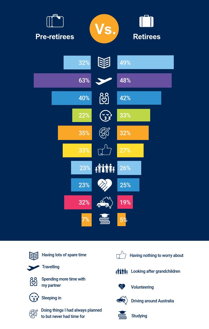 On the downside, spending big when you retire reduces the funds available to support your future income stream. Additionally, using the lump sum to invest outside super may attract higher levels of tax. The other risk in taking a substantial lump sum when you retire is that your circumstances may change later in life. When we compared the experiences of 2,700 Australian retirees with the plans pre-retirees were making, we found there were some interesting discrepancies between plans and reality in areas like travel.